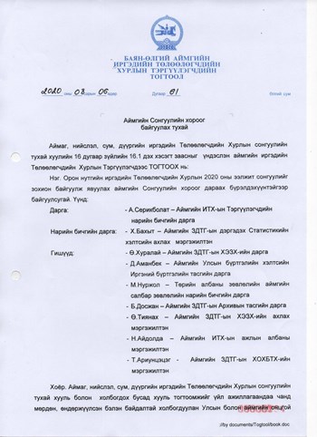 2020 ОНЫ ТЭРГҮҮЛЭГЧДИЙН ТОГТООЛ