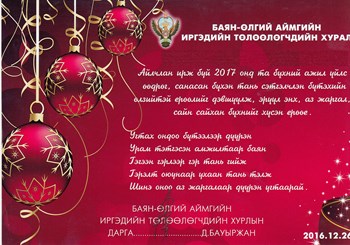 АЙМГИЙН ИТХ-ЫН ДАРГА Д.БАУЫРЖАНЫ ШИНЭ ЖИЛИЙН МЭНДЧИЛГЭЭ