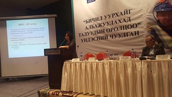 АЙМГИЙН ИТХ-ЫН ДАРГА Д.БАУЫРЖАН “БИЧИЛ УУРХАЙГ АЛБАЖУУЛАХАД ТАЛУУДЫН ОРОЛЦОО” СЭДЭВТ ҮНДЭСНИЙ ЧУУЛГАНД ОРОЛЦОЖ БАЙНА