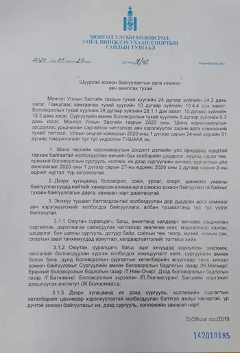БОЛОВСРОЛ, СОЁЛ, ШИНЖЛЭХ УХААН, СПОРТЫН САЙДЫН ТУШААЛ