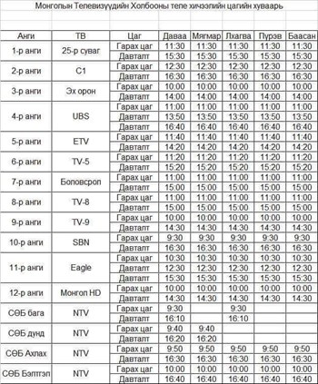 ТЕЛЕ ХИЧЭЭЛ ДАМЖУУЛАХ ТЕЛЕВИЗ БА ЦАГИЙН ХУВААРЬ