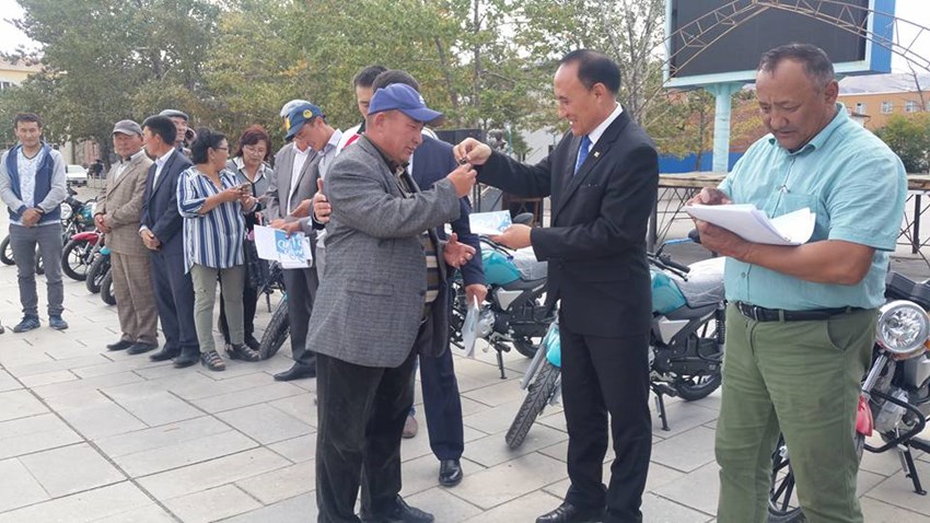 Монгол улсын Засгийн газрын үйл ажиллагааны хөтөлбөр, аймгийн Засаг даргын 2016-2020 оны мөрийн хөтөлбөрт тусгагдсан Хүнс хөдөө аж ахуйн, хөнгөн үйлдвэрийн салбарын бодлогыг хэрэгжүүлэх зорилгоор Баян-Өлгий аймгийн 13 сумын мал эмнэлэг, үржлийн тасгийн эрхлэгч нарт “YAMAHA” маркын мотоцикл олголоо.