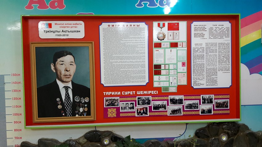 Монгол Улсын гавьяат багш Ү.Ахтышханы үр хүүхдийн зүгээс тус сургуулийн казах хэл, уран зохиолын кабинетийг тохижуулж, ахмад багшийн намтарын талаар өгүүлдэг самбар байрлуулсан байна.
