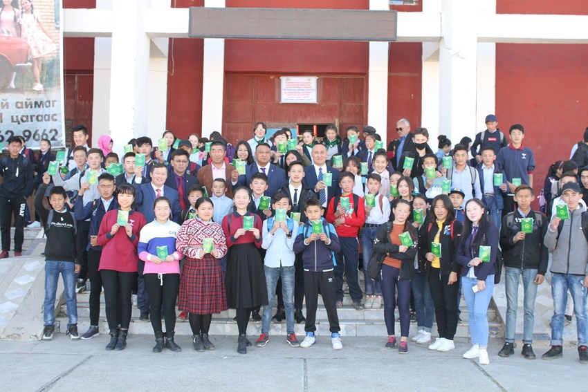 Үүний дагуу Баян-Өлгий аймгийн Ерөнхий боловсролын сургуулиудын IX-XI ангийн 500 гаруй сурагчдыг байгаль хамгаалах үйлсэд татан оролцуулах зорилгоор “Ногоон паспорт” гардуулж сургуулийн Эко клуб хариуцсан багш нарт аюултай хог хаягдал болох зай хураагуур хийх зориулалтын хогийн савыг олголоо.