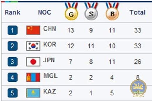 Өмнөд Солонгосын Инчон хотноо болж буй Азийн наадамд Монгол Улс медалийнхаа чанараар БНХАУ, Өмнөд Солонгос, Япон улсын дараа дөрөвдүүгээр байрт бичигдэж байна. Манай буудлагын тамирчид хүрэл медаль хүртэн медалийн салхийг хагалсан бол жүдогийн тамирчид маань хоёр алт, нэг мөнгөн медалийг эх орондоо авчраад байгаа нь бахархалтай.