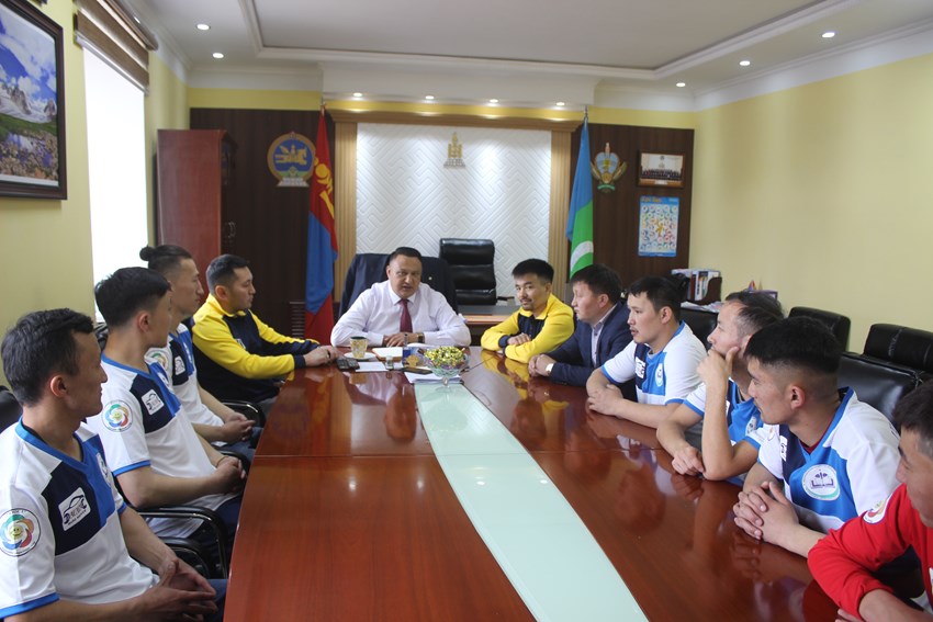 Энэхүү шигшээ багийн тамирчдыг аймгийн Хурлын дарга Д.Бауыржан өнөөдөр албаны өрөөндөө хүлээн авч уулзаж өмнө нь амласан ёсоор заалны өмсгөлийг хувиасаа гардуулан өглөө.