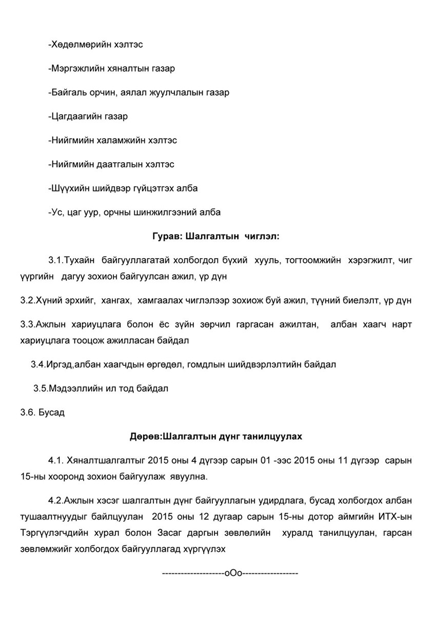 удирдамжийн дагуу 2015 оны 09 дүгээр сарын 29-ний өдөр Байгаль орчин,