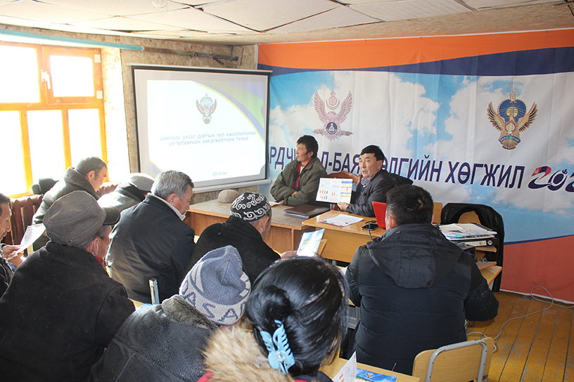 МУ Засгийн газраас 2012-2015 онд авч хэрэгжүүлсэн арга хэмжээнүүд, Баян-Өлгий аймгийн Засаг даргын 2012-2015 оны үйл ажиллагааны мөрийн хөтөлбөрийн биелэлт, сум, орон нутагт 2012 оноос хойш хийгдсэн бүтээн байгуулалтын ажлын талаар танилцуулга, мэдээлэл хийв.