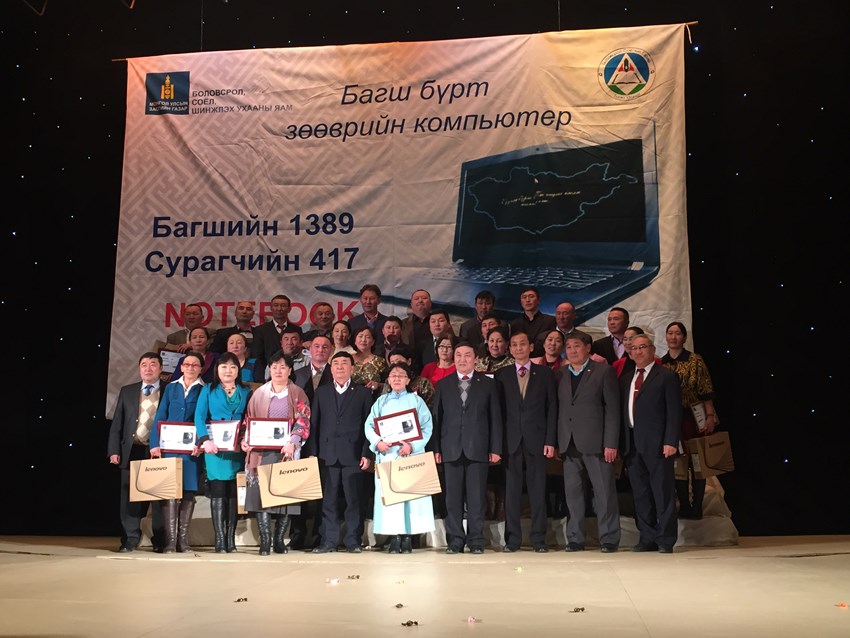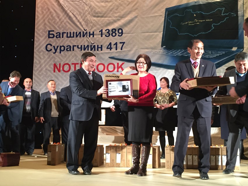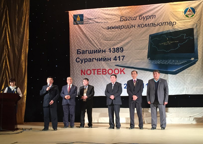 Улсын хэмжээнд нийт 25,000 ширхэг зөөврийн компьютерийг багш бүрт, сургалтын орчныг сайжруулах чиглэлээр 11,340 ширхэг зөөврийн компьютерийг лабораторын сургууль бүрт олгохоор болсон. Энэ арга хэмжээний хүрээнд Баян-Өлгий аймагт багш нарт зориулаж 1389, сурагчдад зориулж 417 компьютер олгов.