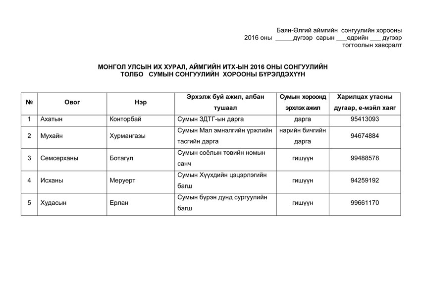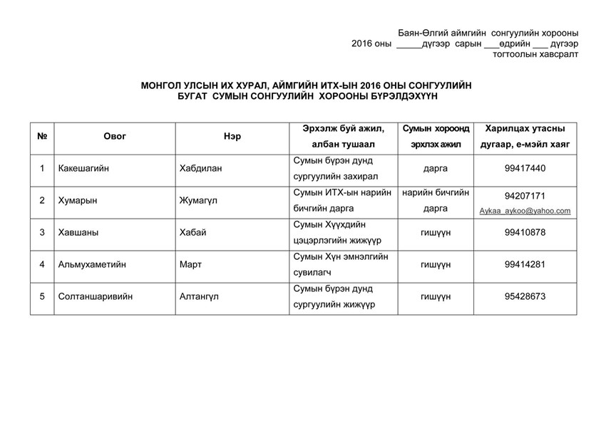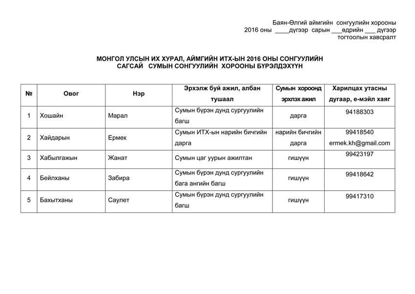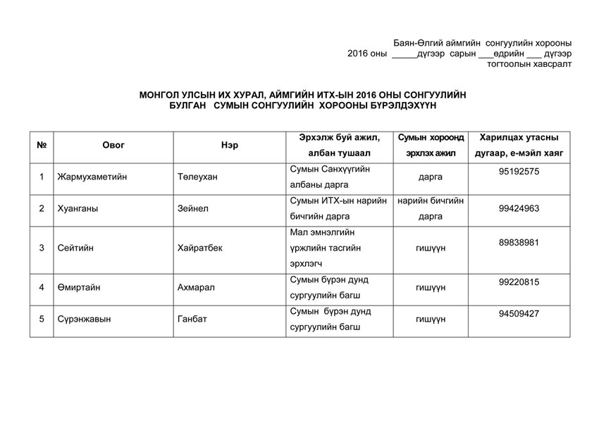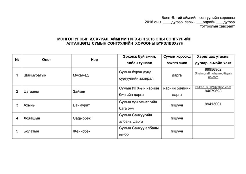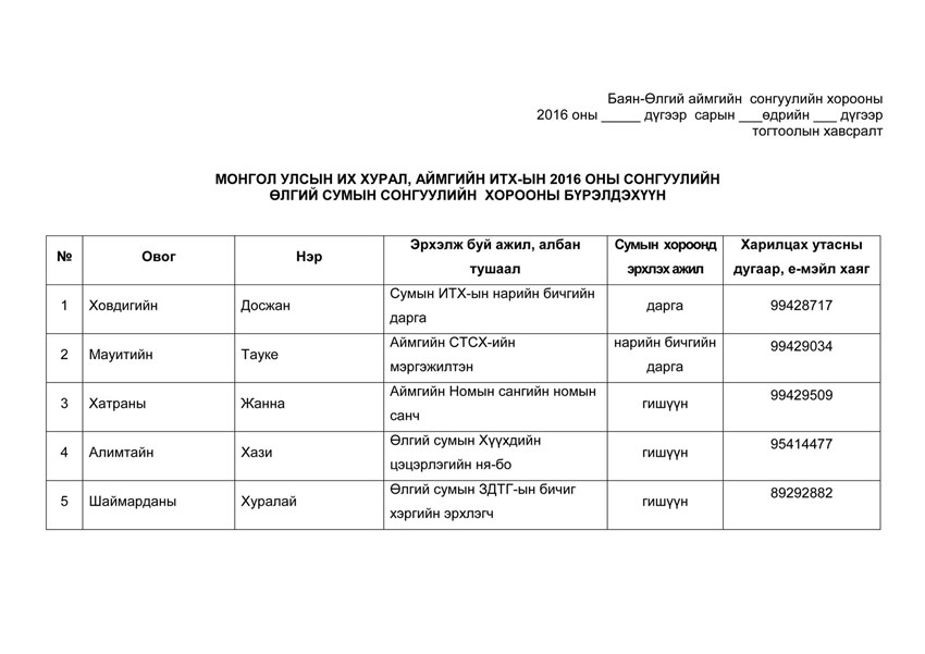 Дарга: К.Баймурат - Баян-Өлгий аймгийн ИТХ-ын Тэргүүлэгчдийн нарийн бичгийн дарга