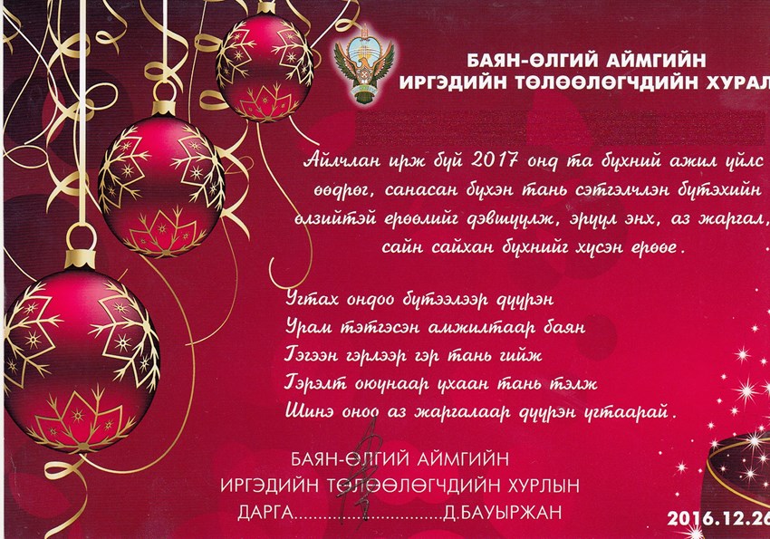 АЙМГИЙН ИТХ-ЫН ДАРГА Д.БАУЫРЖАНЫ ШИНЭ ЖИЛИЙН МЭНДЧИЛГЭЭ