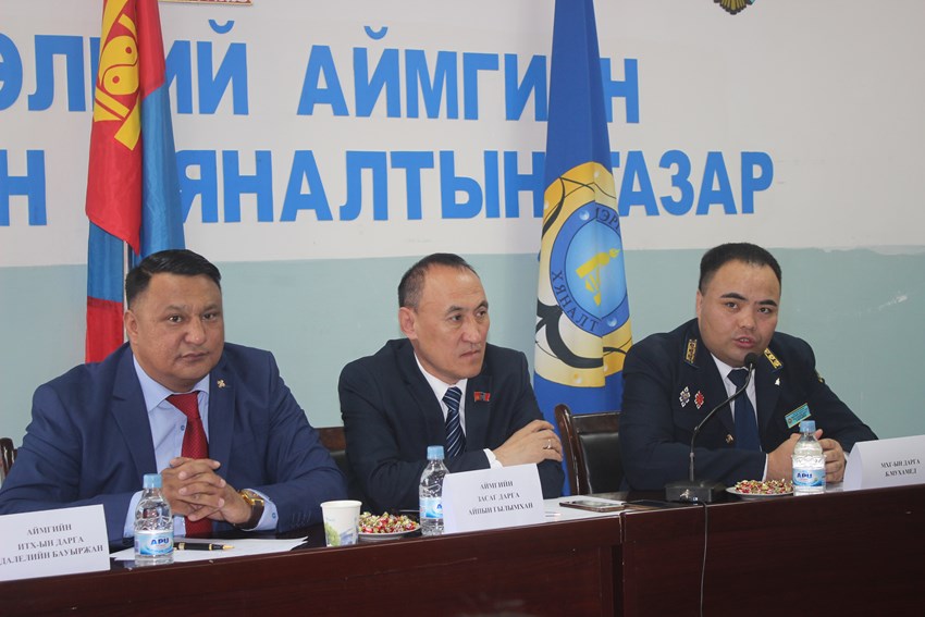 Аймгийн Мэргэжлийн Хяналтын Газраас сумдын удирдлагууд болон улсын байцаагчдын хамтарсан зөвлөгөөнийг зохион байгуулж байна. Зөвлөгөөний нээлтэнд аймгийн удирдлагууд оролцлоо. Тус арга хэмжээний нээлтэнд үг хэлсэн аймгийн ИТХ-ын дарга Д.Бауыржан ард иргэдийг байгалийн эсрэг гэмт хэргээс урьдчилан сэргийлэх ажлыг МХГ-ын улсын байцаагчид түлхүү зохион байгуулах шаардлагатай талаар дурьдлаа.