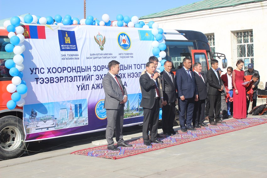Өнөөдөр улс хоорондын зорчигчдын тогтмол тээвэрлэлтийг эхлүүлэх нээлтийн үйл ажиллагаа боллоо. Уг арга хэмжээнд Зам, тээврийн хөгжлийн яамны тээвэр зохицуулалт, хөгжлийн бодлогын хэлтсийн дарга Б.Гантулга, Авто тээврийн үндэсний төвийн тээвэр зохицуулалтын хэлтсийн дарга Д.Батбаяр, Авто тээврийн үндэсний төвийн хөдөлгөөний удирдлагын хэлтсийн дарга К.Айдос болон аймгийн удирдлагууд, аймгийн авто тээврийн үндэсний төвийн дарга, мэргэжилтнүүд оролцлоо.